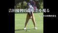 吉田 優利両プロ共にクラブヘッドの動きが速いが、総合的には渋野プロの方が速い。特にダウンスイングが速いのが目に付く。ボールの飛距離は、ヘッドスピード、スイング軌道の大きさ、ミート率、ボールの初速、捻転差その他に影響される。スイングのテンポとリズムとスイングスピードからのみ勘案すると、渋野プロの方が平均飛距離が大きいことには納得できる。