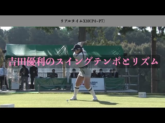 吉田 優利アドレスからフォローのクラブヘッドストロークを測定し、さらにテークバックとテークダウンそしてフォローをそれぞれ分析測定をした。