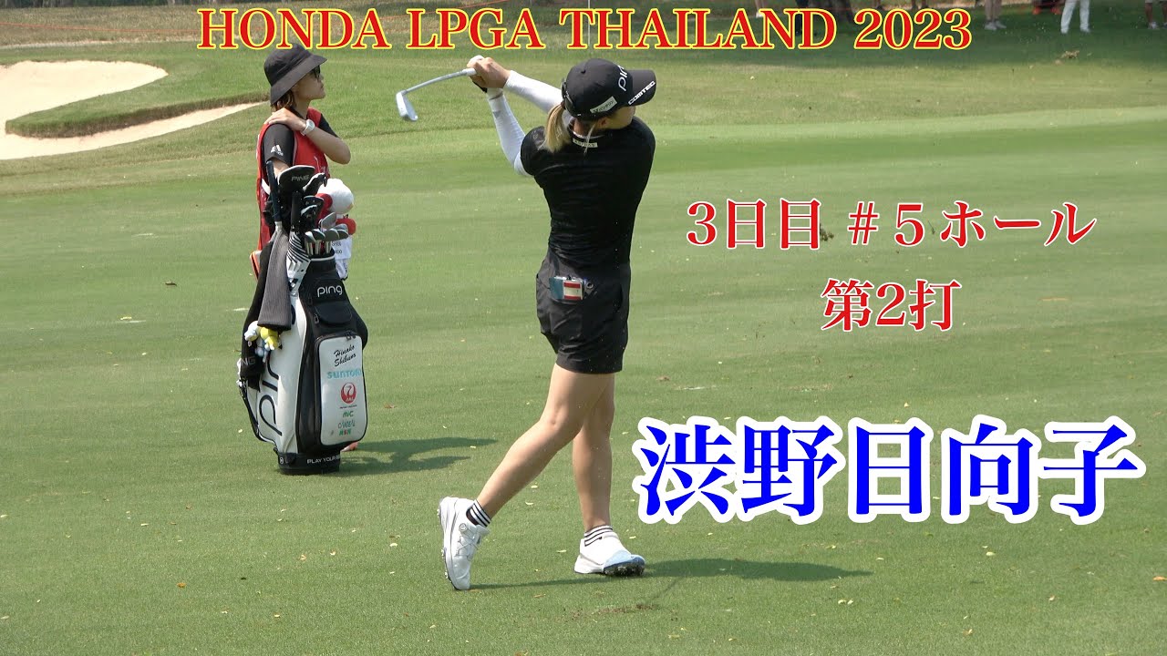 渋野日向子3日目 フェアウェイからの第2打 今回のピン位置はグリーンの手前側