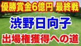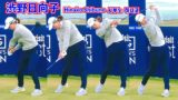 渋野日向子選手は、ピンの手前に置くために、花道部分に初球を置いていました。
